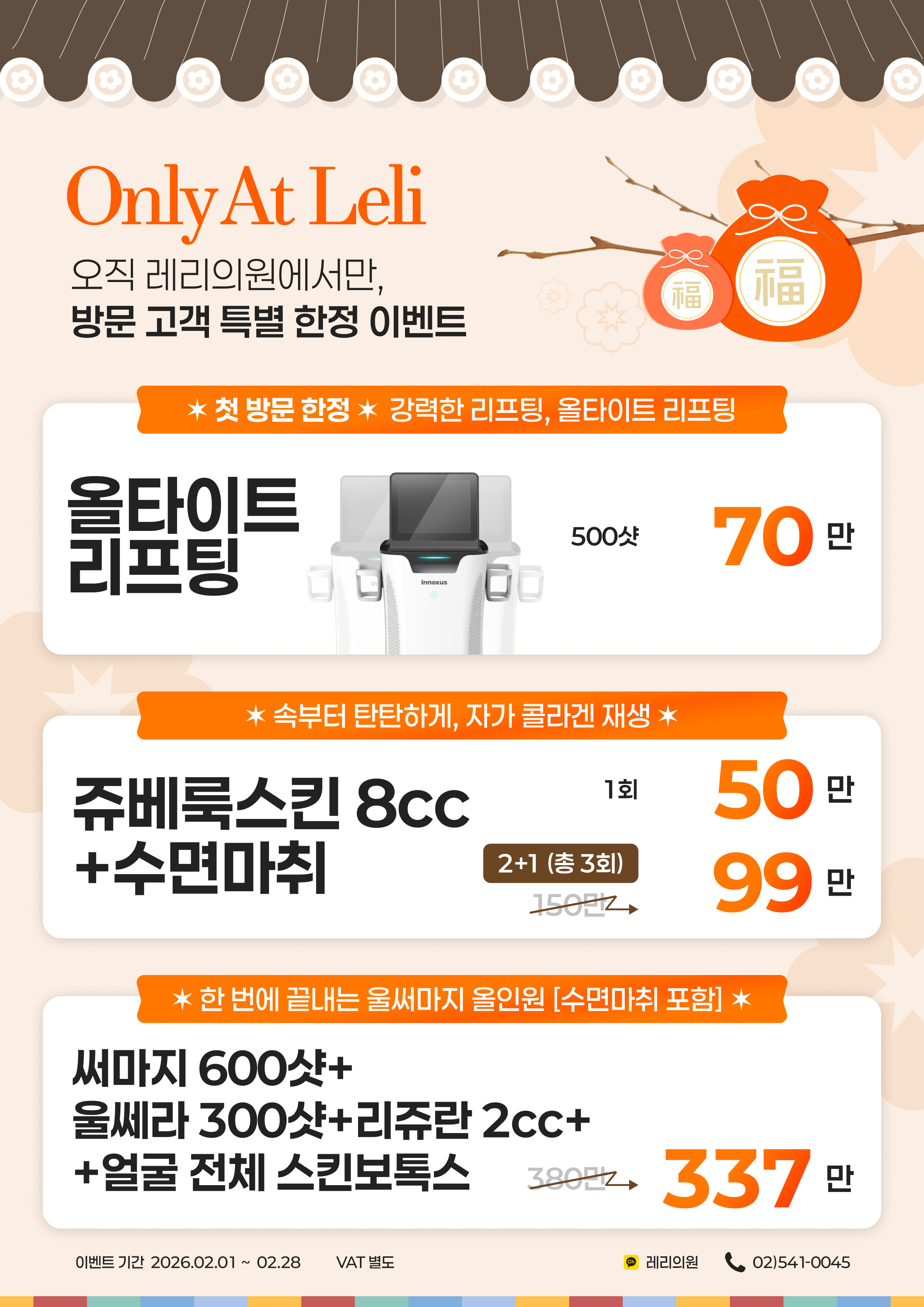 레리의원 | 서울시 서초구 강남대로 605, 휴먼타워 12층 | 대표 오용주 | 사업자등록번호 298-07-02657 | 대표전화 02-541-0045