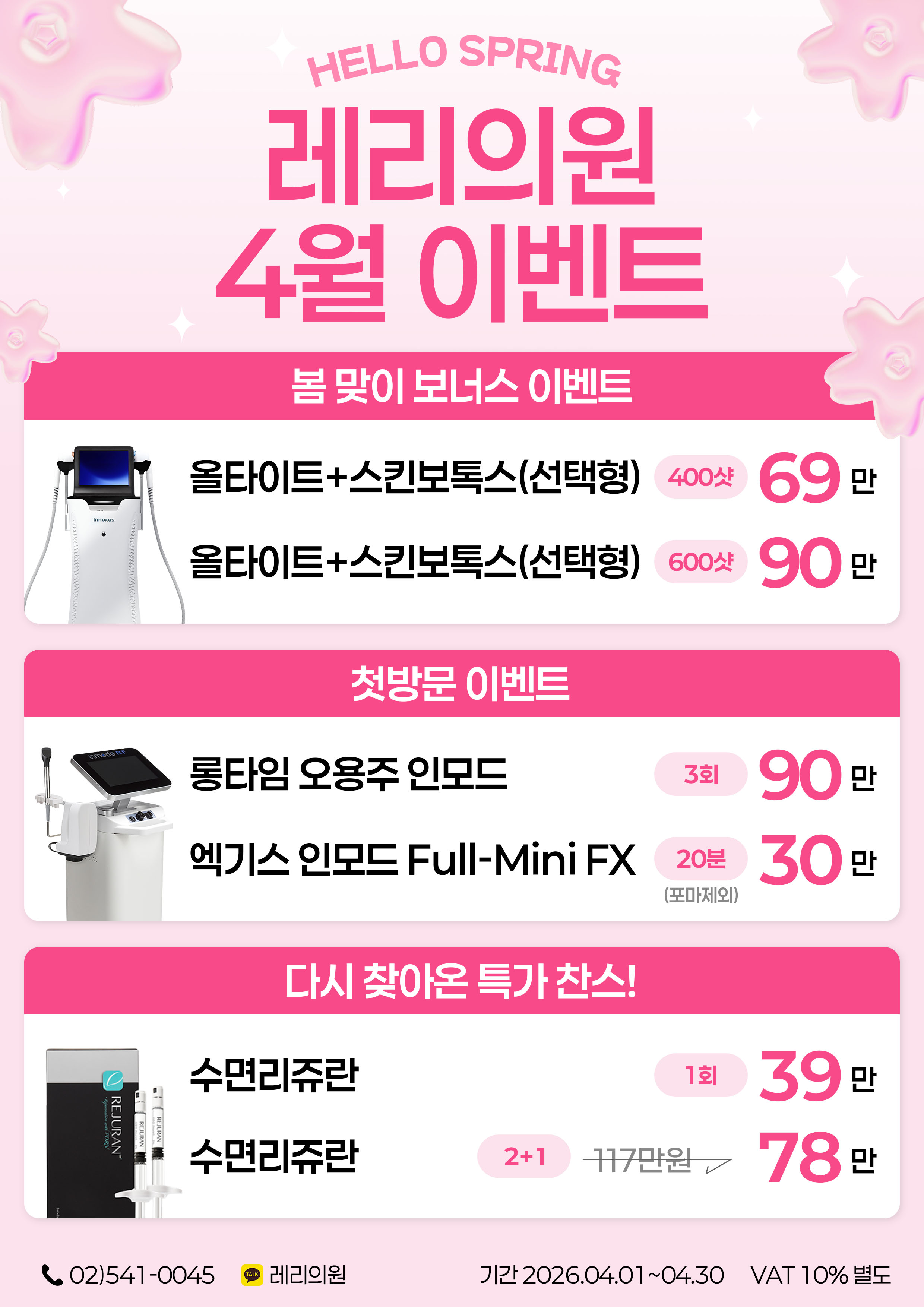레리의원 | 서울시 서초구 강남대로 605, 휴먼타워 12층 | 대표 오용주 | 사업자등록번호 298-07-02657 | 대표전화 02-541-0045
